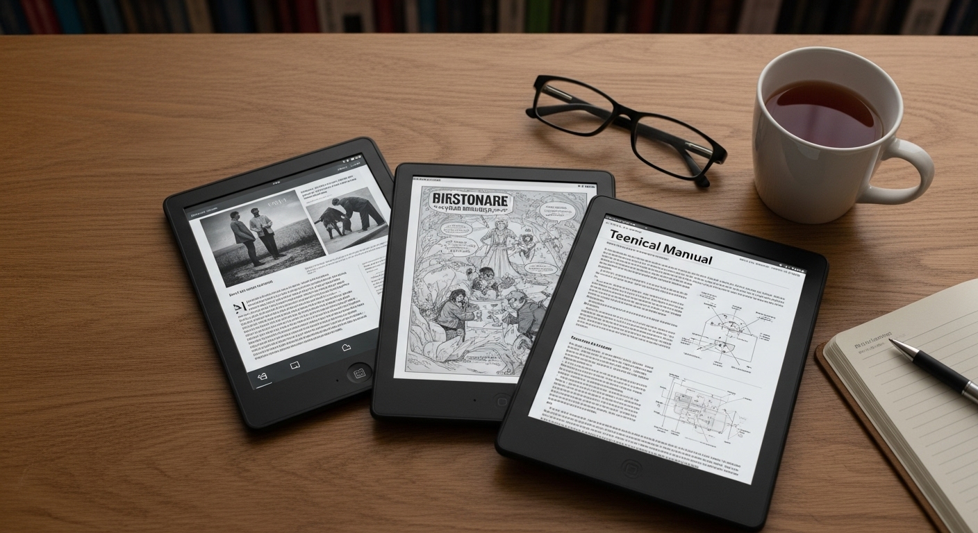 Onyx Boox and PocketBook go further by offering larger screens and even color E Ink options. While color E Ink is not as vibrant as tablet displays, it adds an extra dimension for readers of comics and illustrated books.
